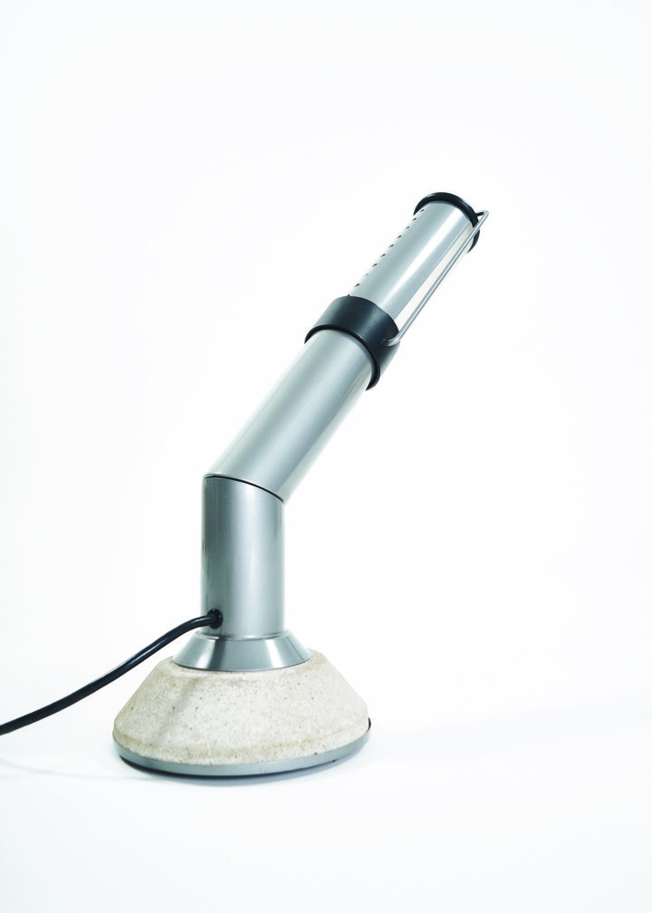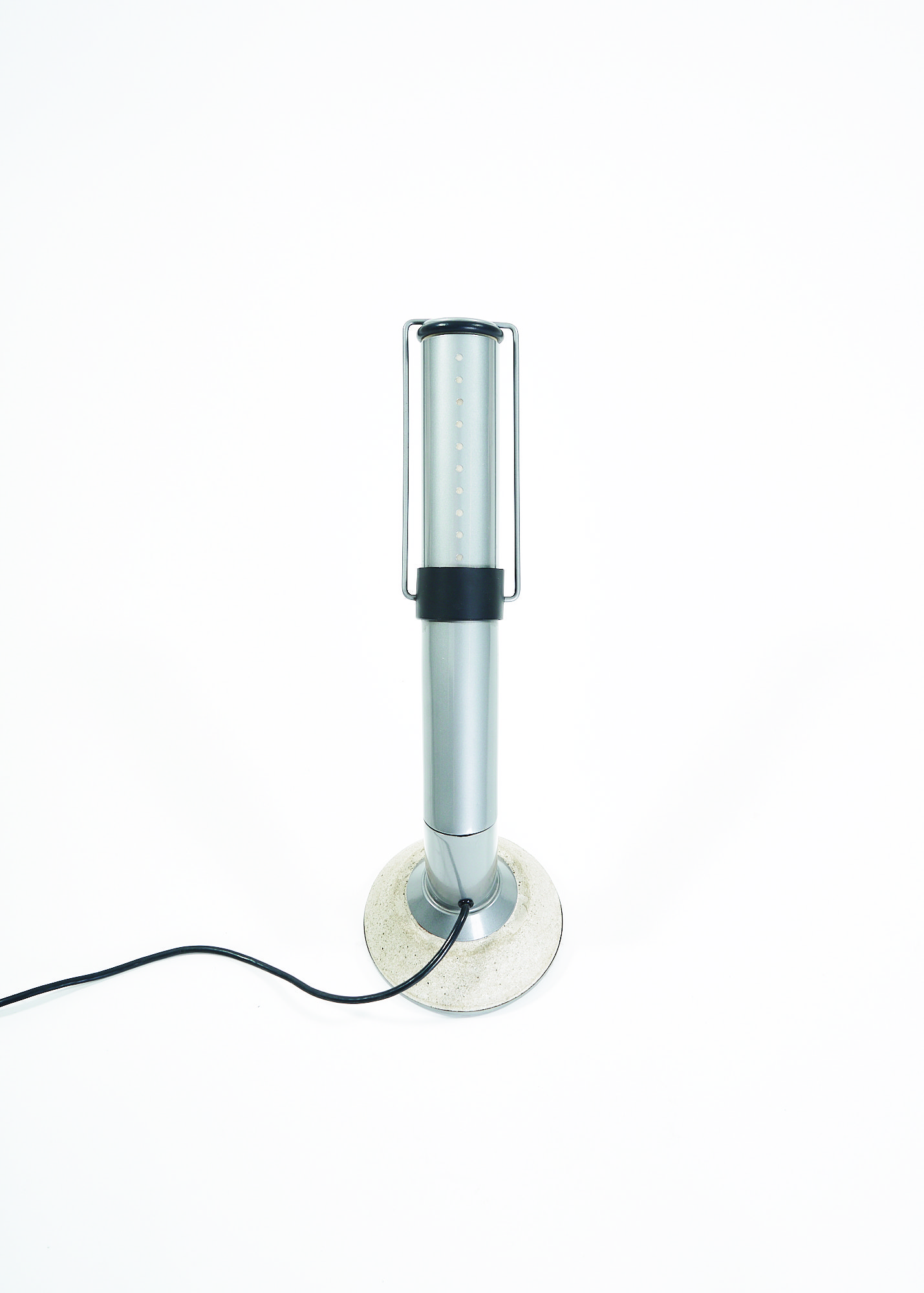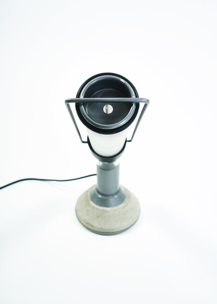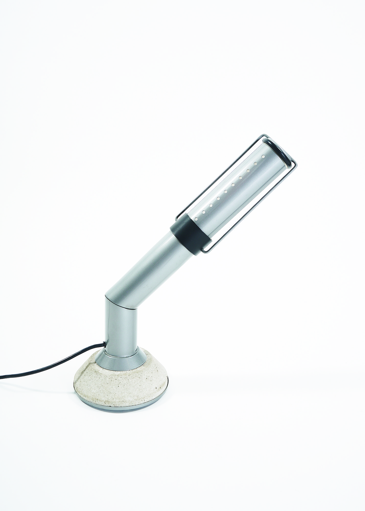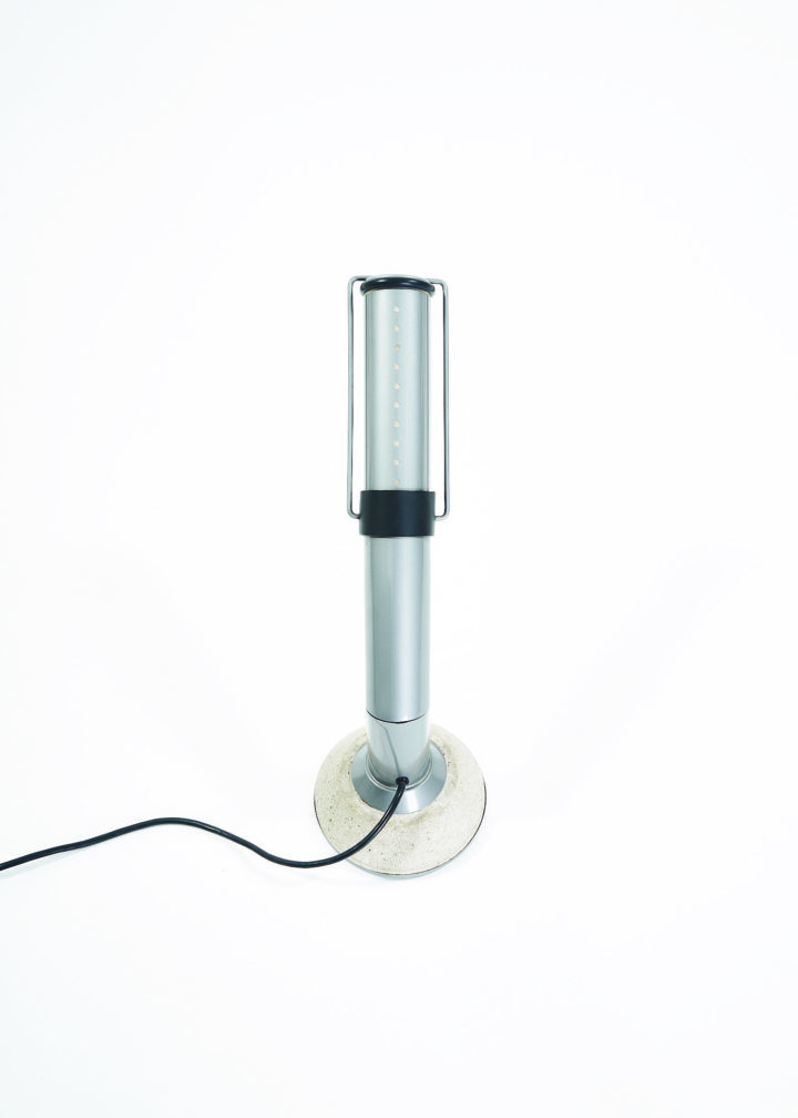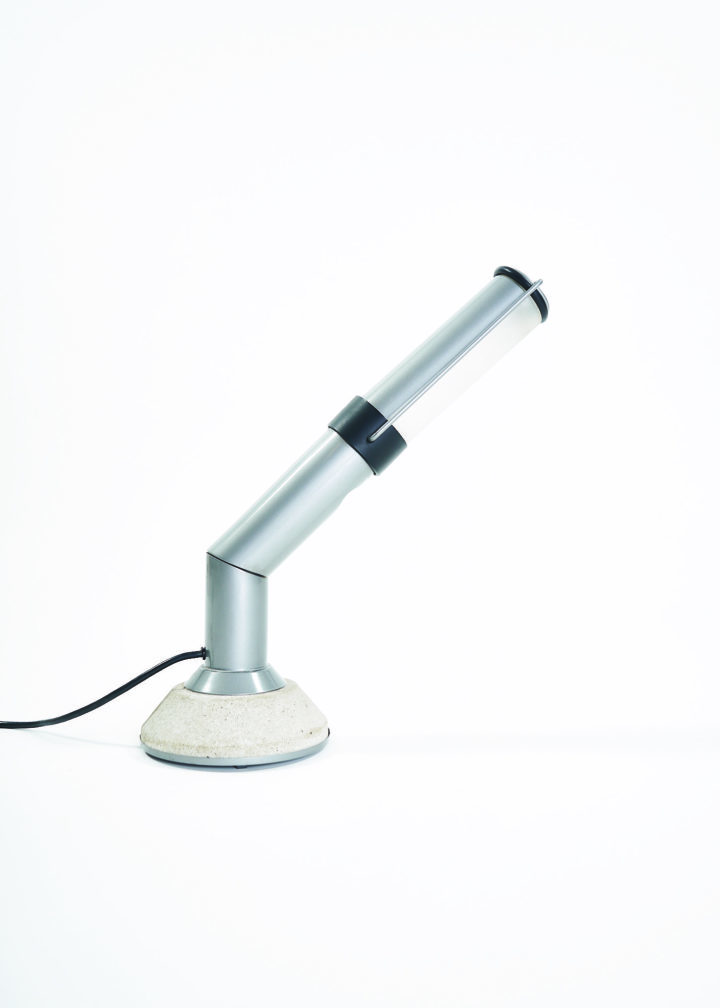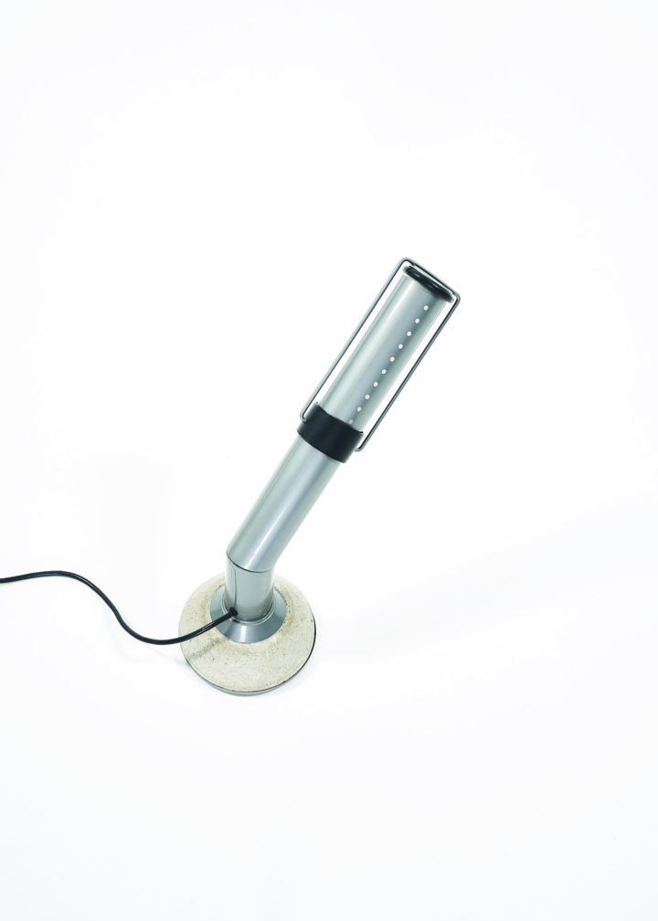 This little-known design is one of the best examples of Canadian postmodern lighting from the 1980s. The Gio desk lamp was part of a collection designed by Jacques Legendre for the defunct Montreal manufacturer Clic. Its surprising combination of materials blends into a minimalist form with beautiful details.