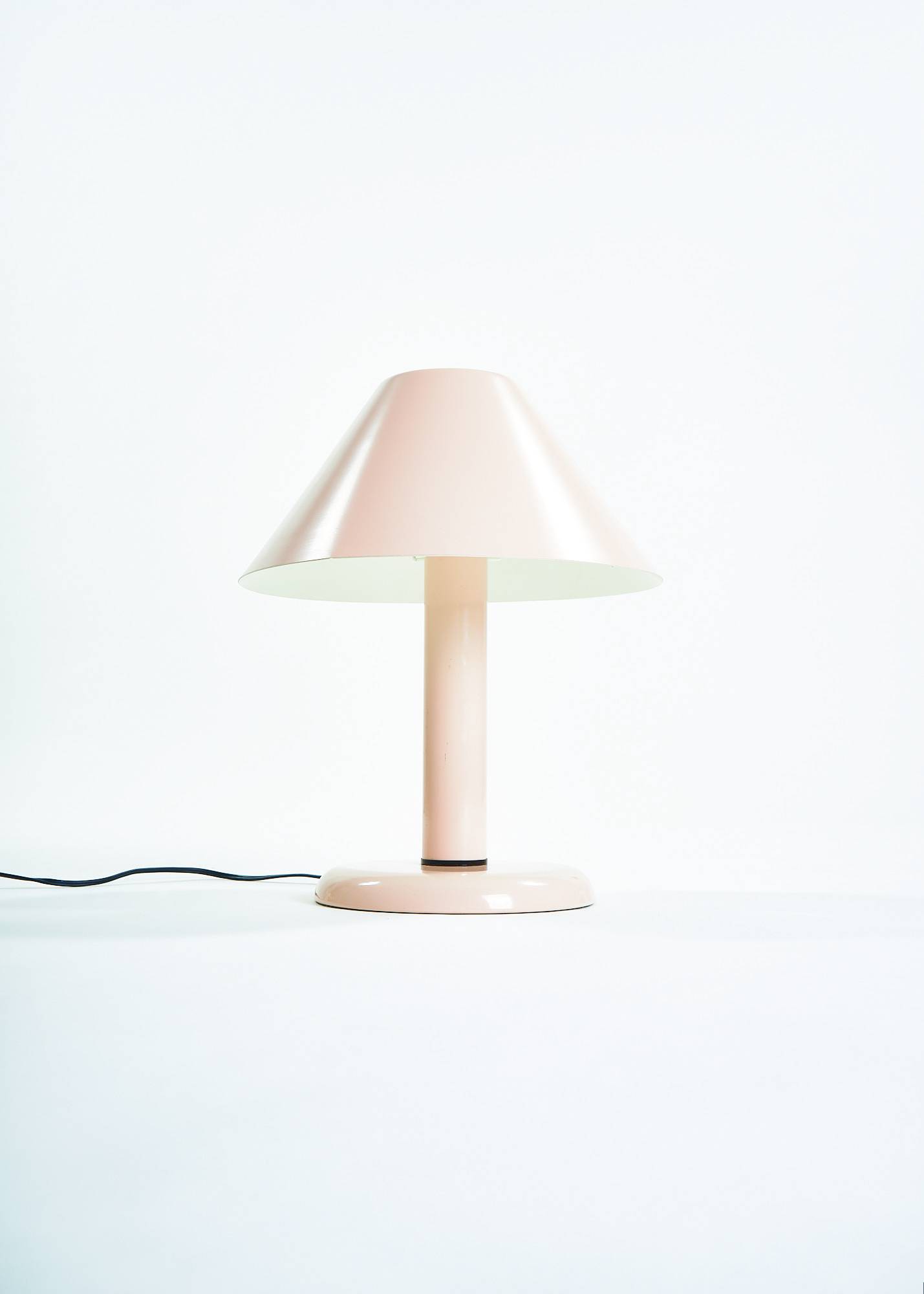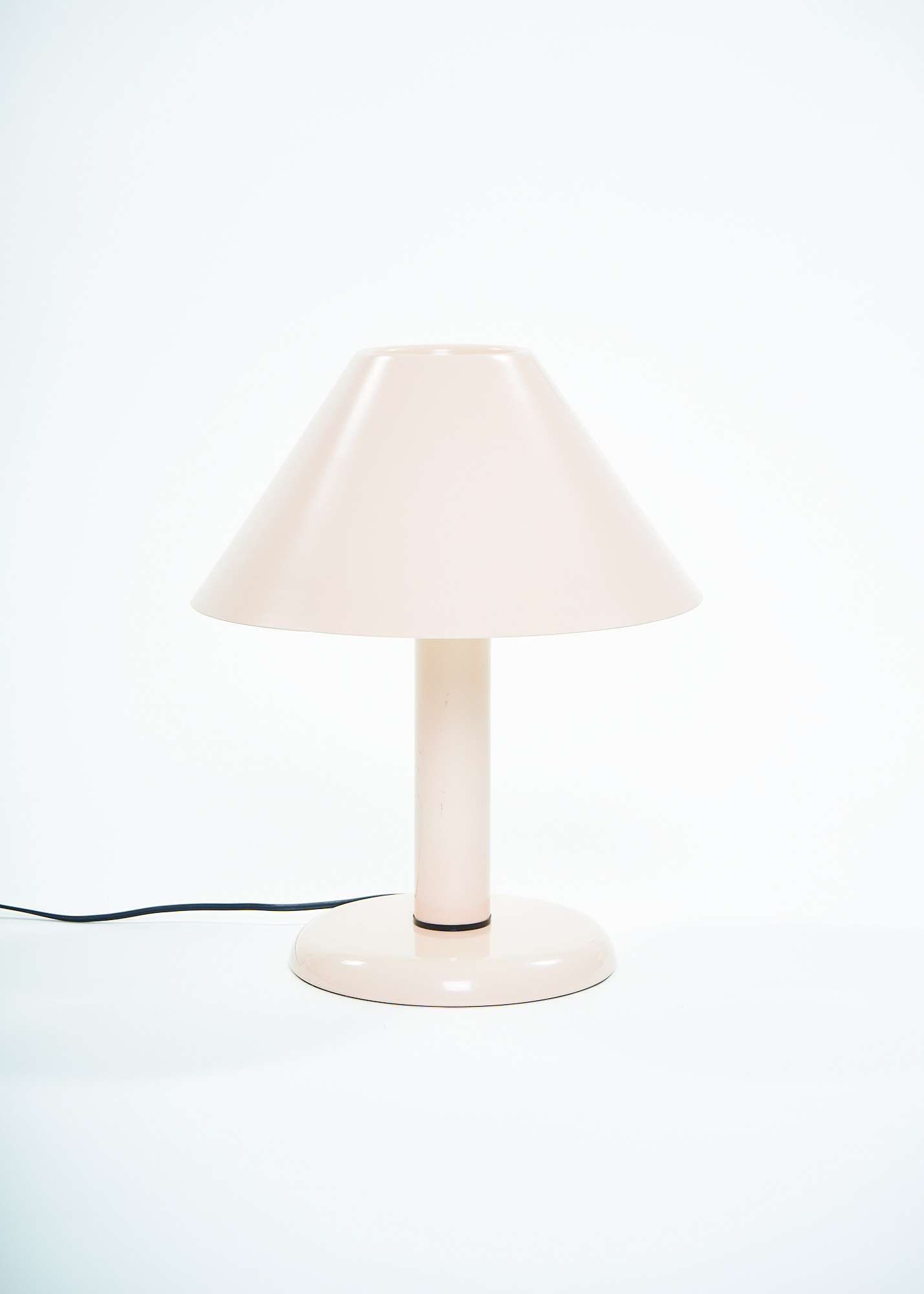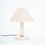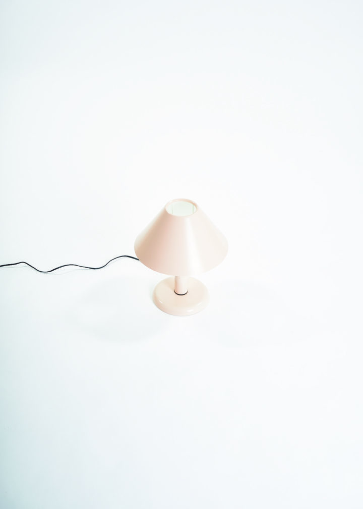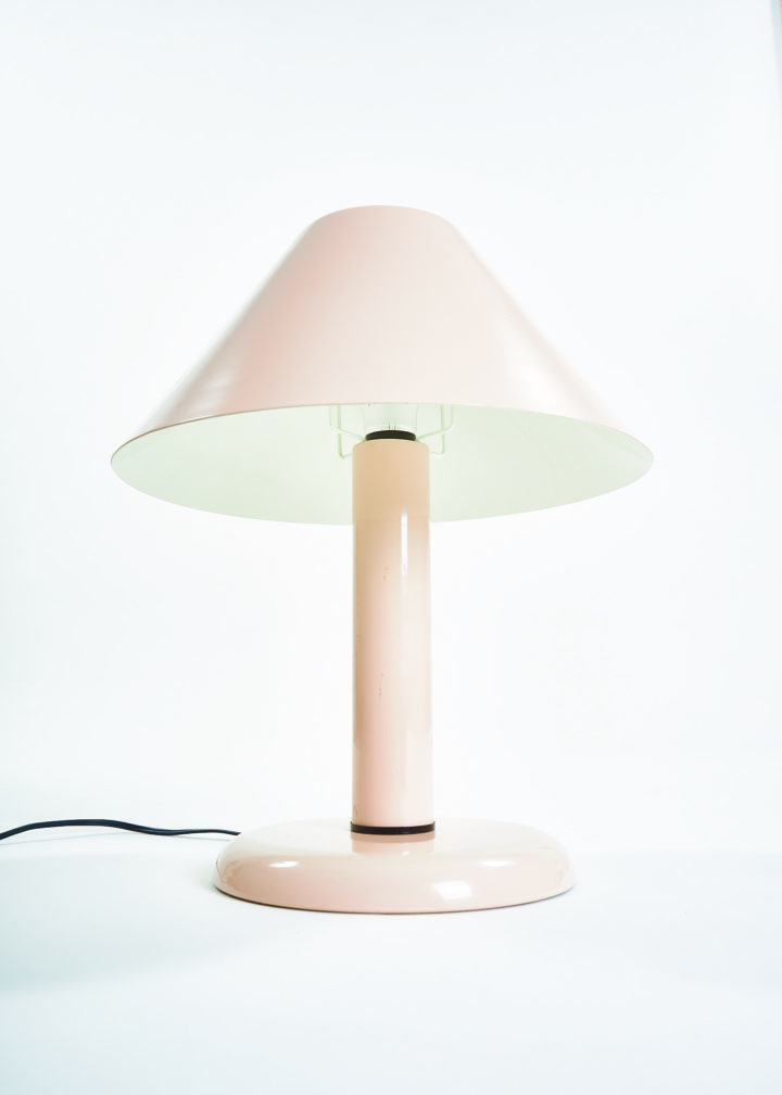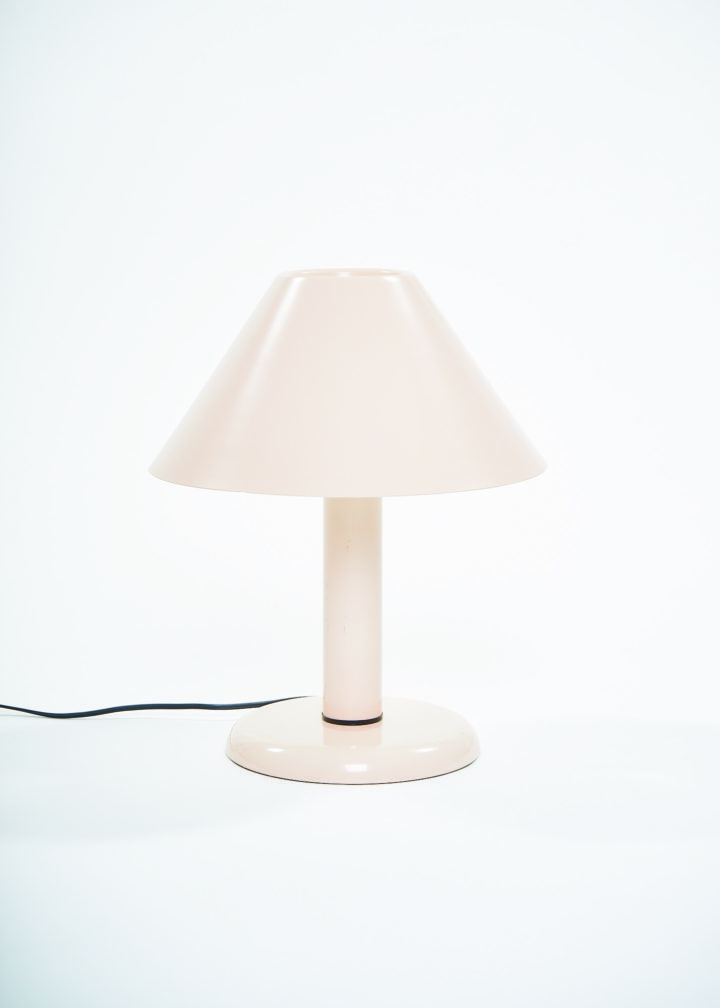 Ask a child to draw a lamp on a piece of paper and there are good chances you will end up with a doodle resembling this lamp. Strongly reminiscent of the Trapèze lamp by André Desrosiers designed in 1985 for the defunct Montreal-based manufacturer Sverige, this lamp embodies the formal qualities of an archetypal desk lamp, stripped of all overzealous details. A round base, a cylindric mast and a trapezoid shade make for a simple and timeless design.
