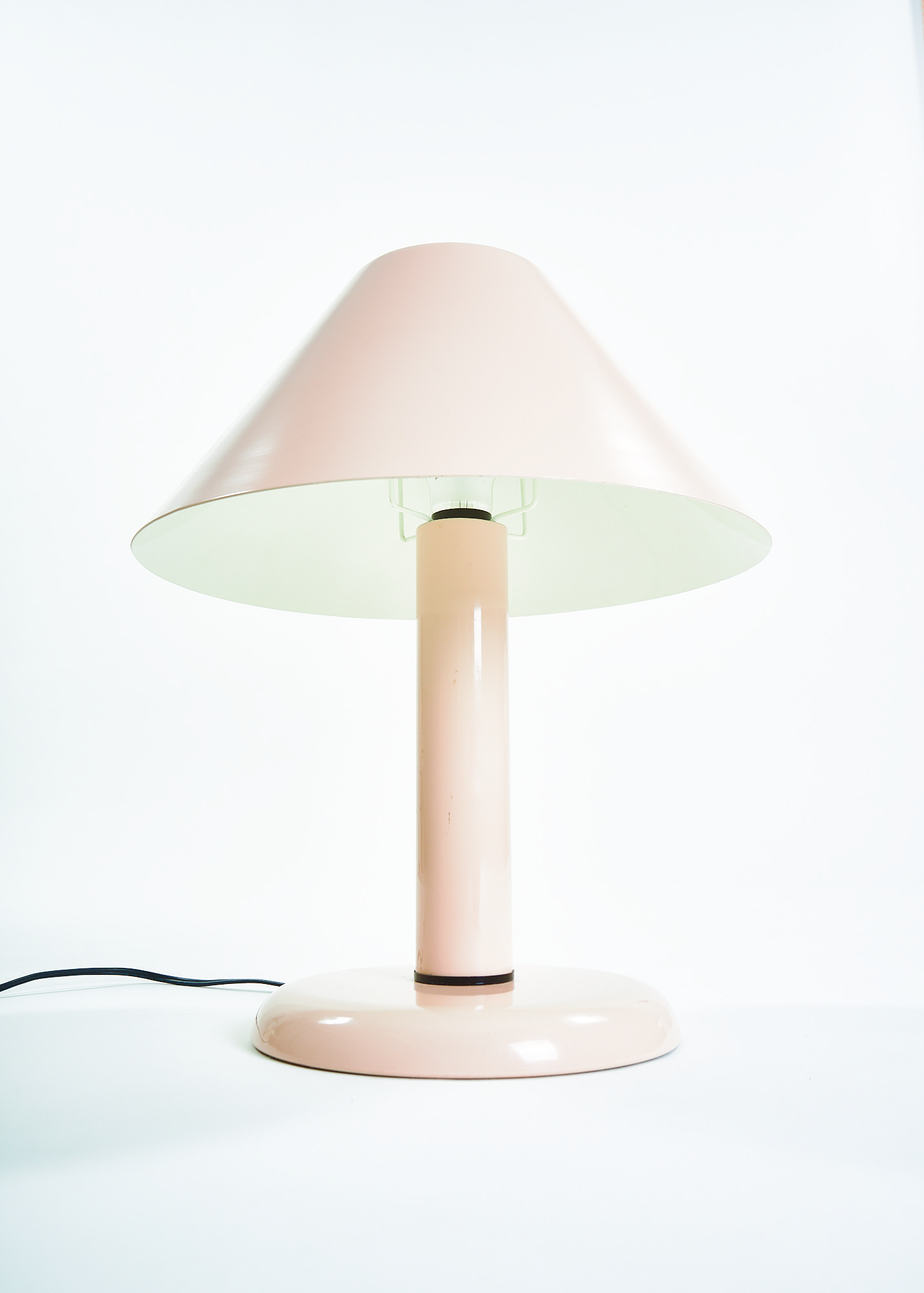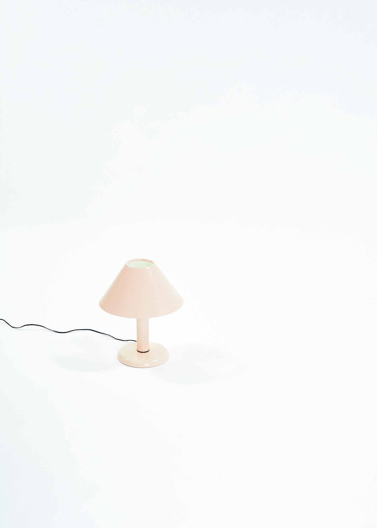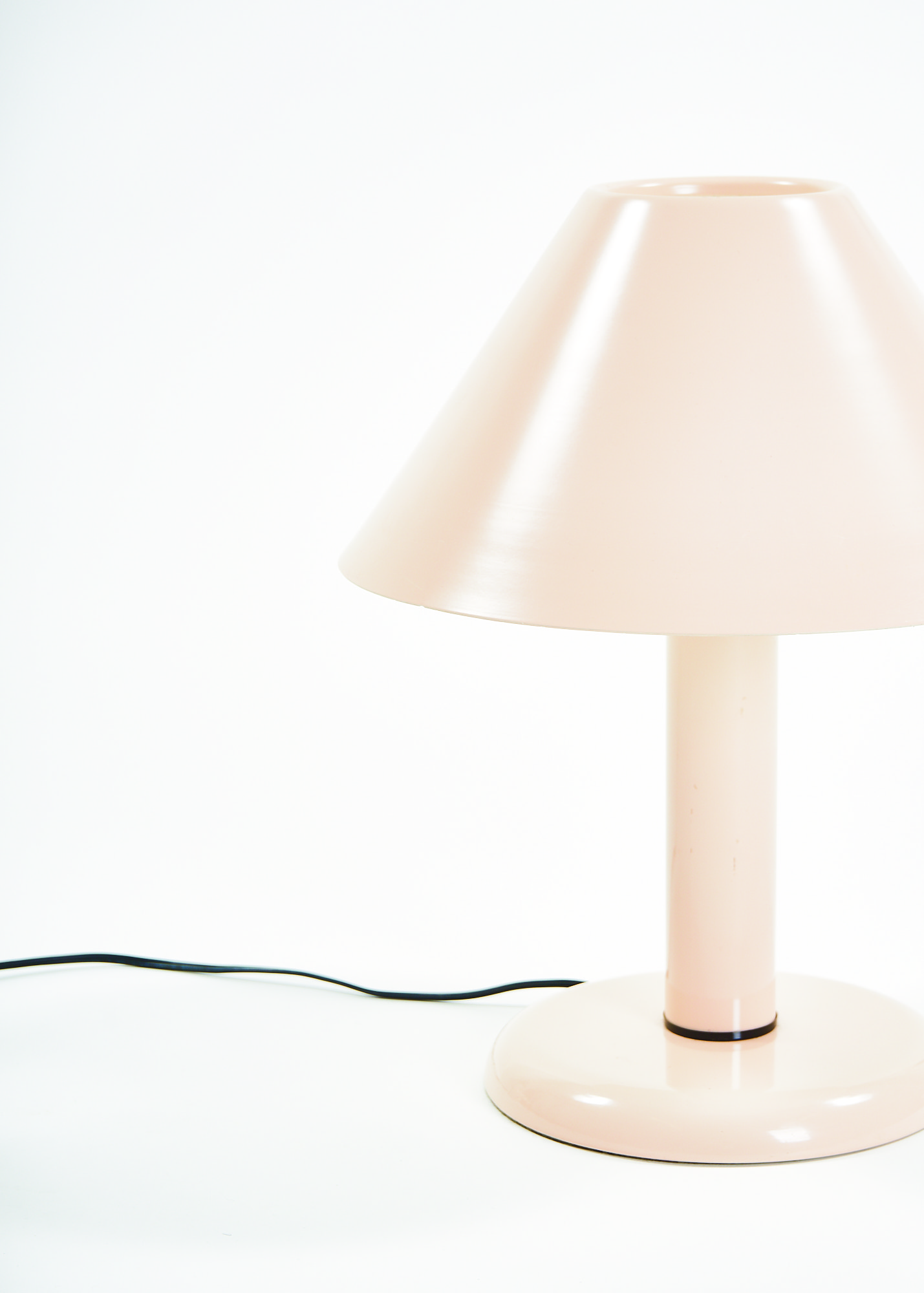 Ask a child to draw a lamp on a piece of paper and there are good chances you will end up with a doodle resembling this lamp. Strongly reminiscent of the Trapèze lamp by André Desrosiers designed in 1985 for the defunct Montreal-based manufacturer Sverige, this lamp embodies the formal qualities of an archetypal desk lamp, stripped of all overzealous details. A round base, a cylindric mast and a trapezoid shade make for a simple and timeless design.