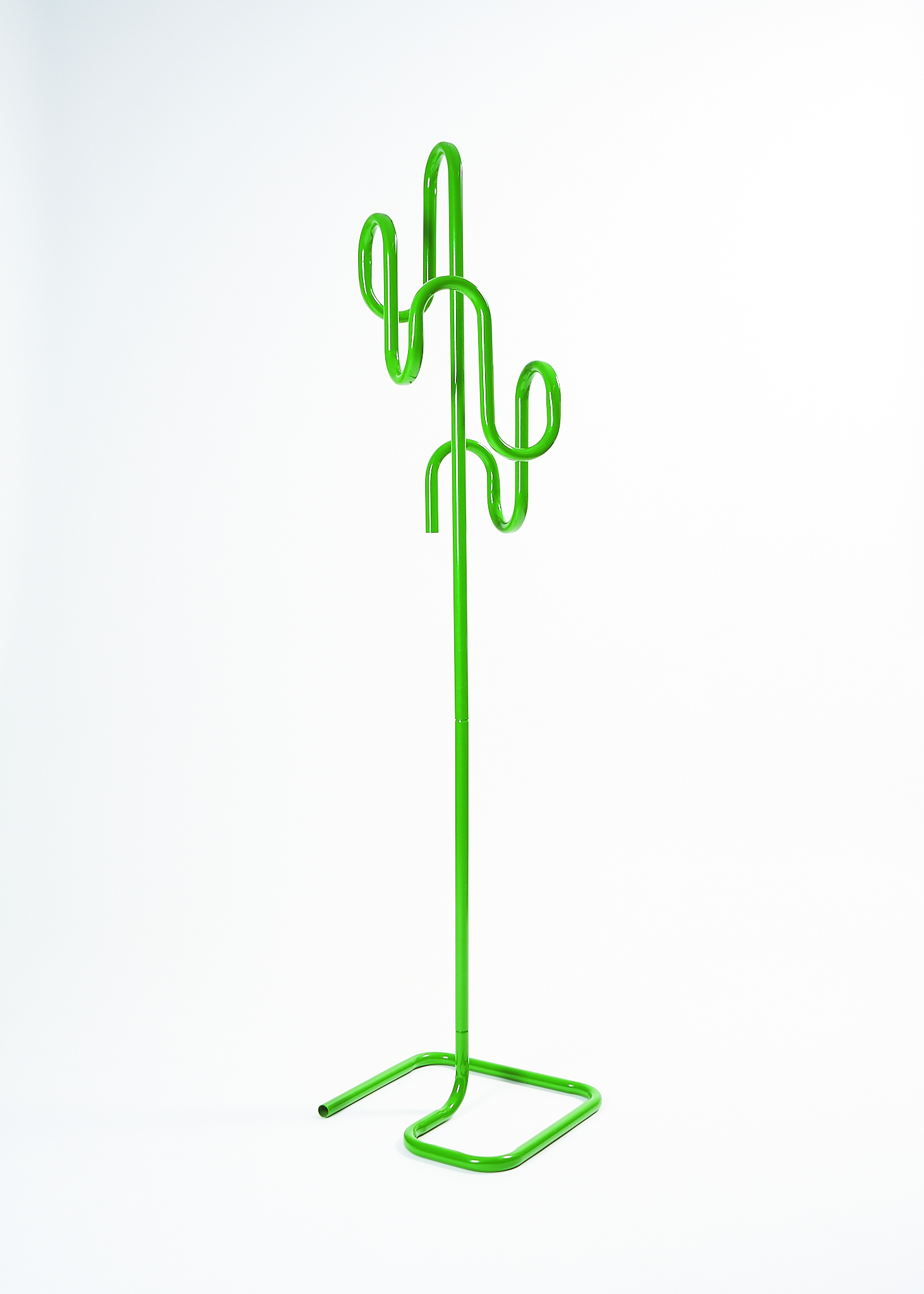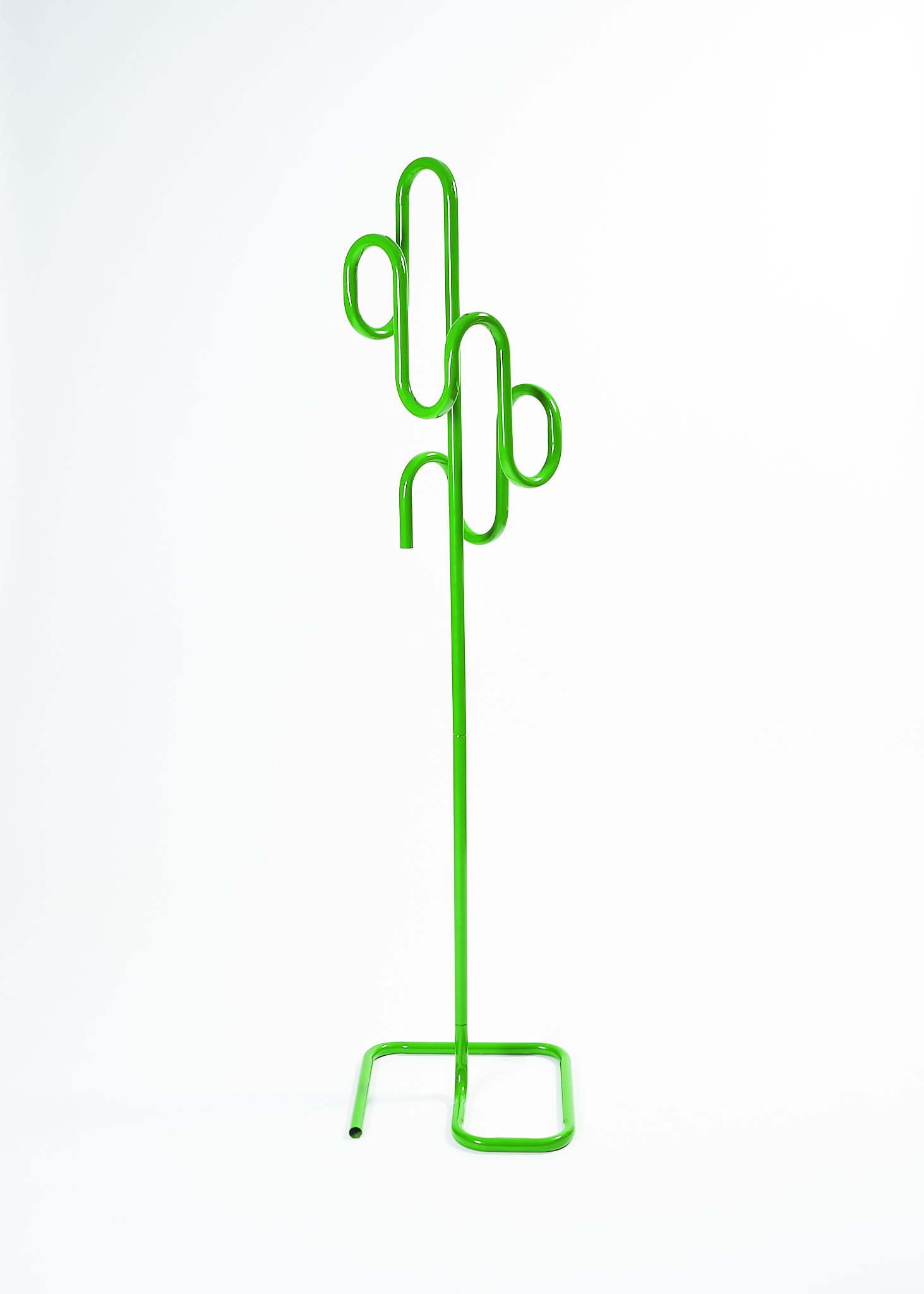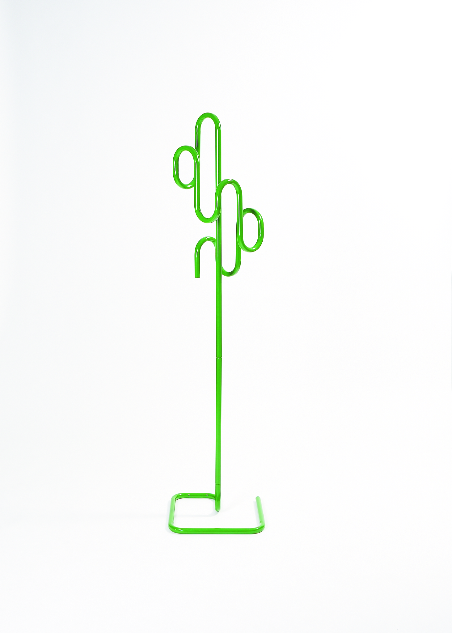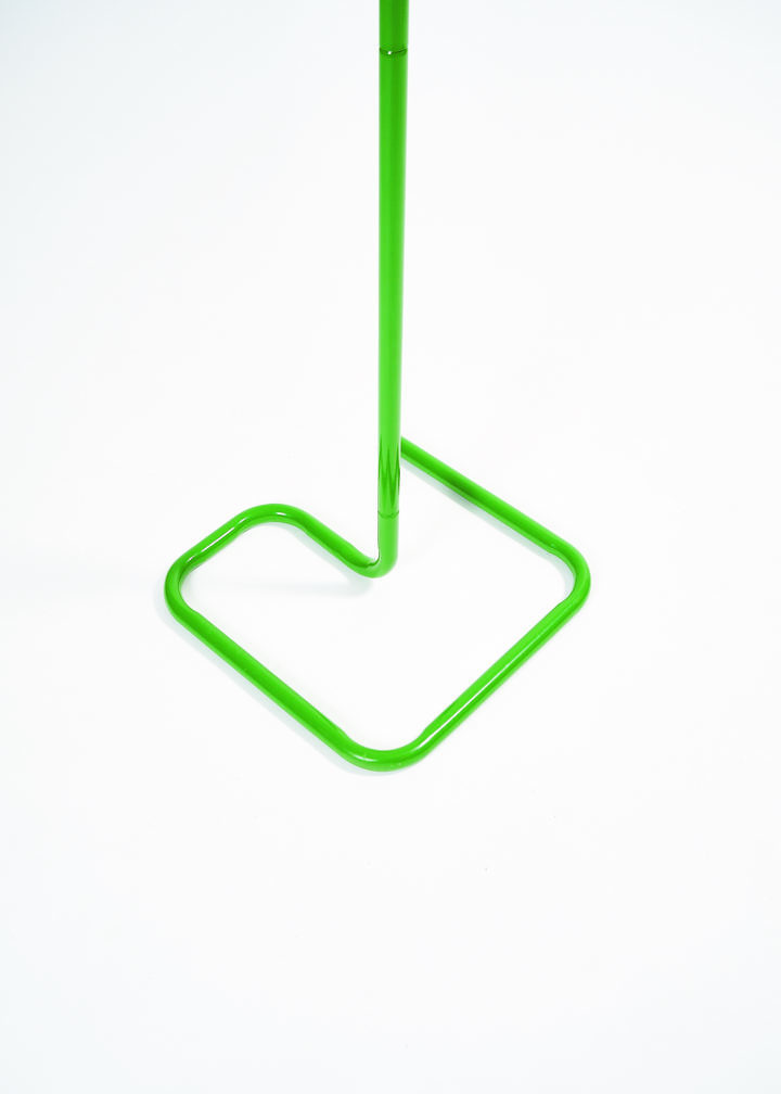 Truly a favorite. Although not much is known about it, this stunning piece was distributed in Quebec by Les Distributions Jacques Brien and was nicknamed the “Cactus”. Exploring the process of tube bending to its full potential, this coat stand is made of three pieces that can be disassembled for ease of shipping. Refinished professionally in a “Grass green” powder coat.