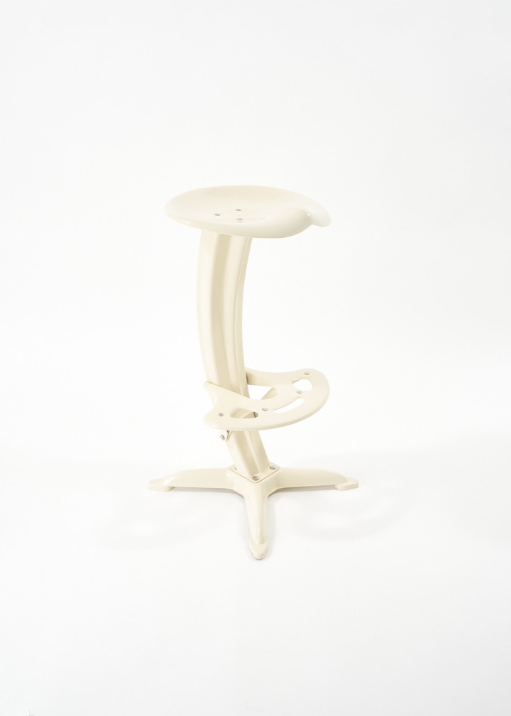 The Lotus stool is part of a series of iconic pieces designed by Yasu Sasamoto for the manufacturer Dulton Co. Ltd. Made entirely of beige powder-coated steel, this stool shows the technical and formal mastery associated with Sasamoto’s output as a designer. The biomorphic aesthetic of the stool makes it a sculptural statement that stands out in any interior setting.