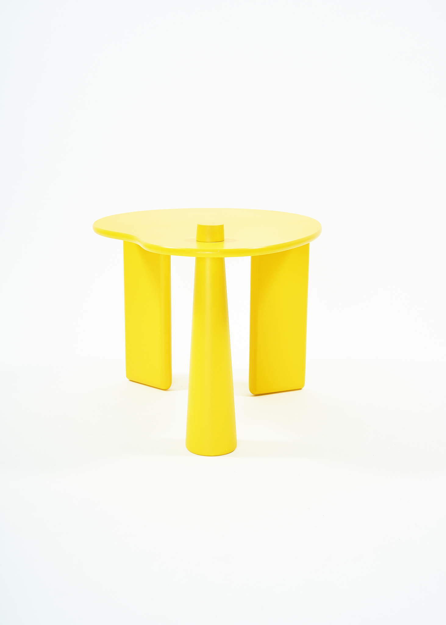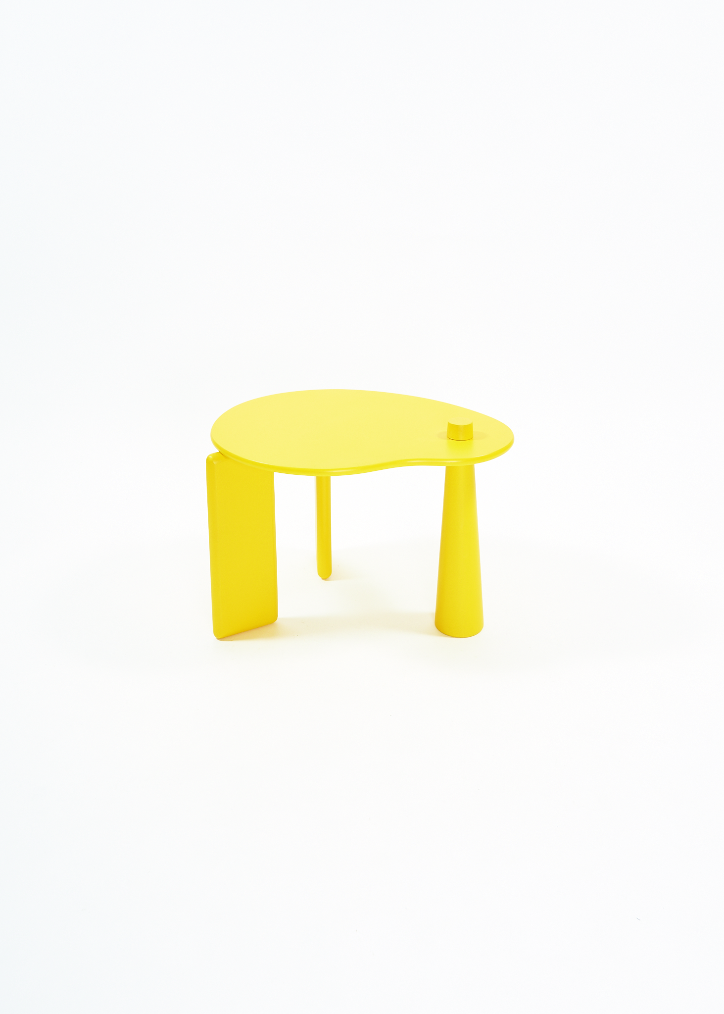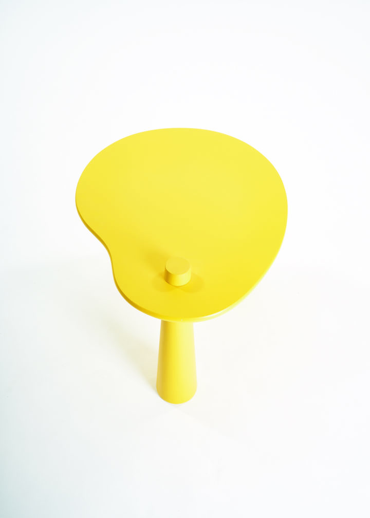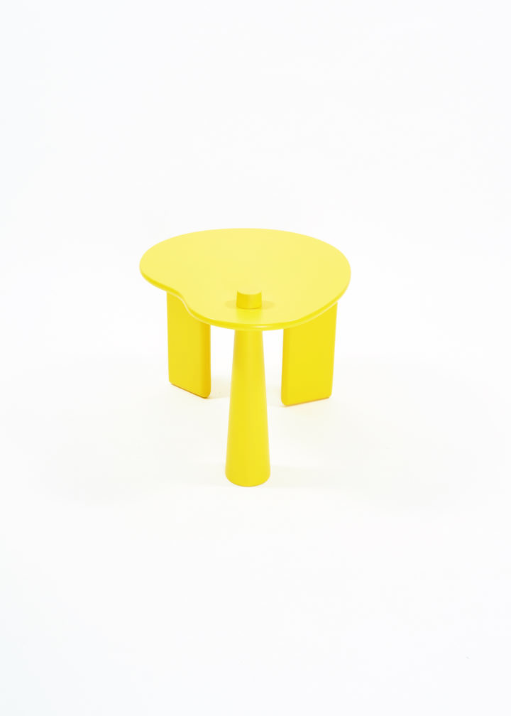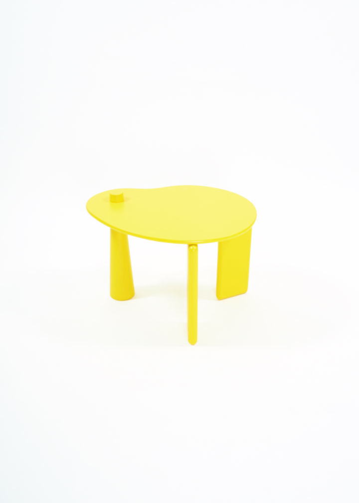 A little-known design outside of Quebec, this sculptural and insanely cute side table was manufactured in the 1990s by the now defunct Canadian furniture brand Laurier. This table was professionally refinished in a “Hot yellow” paint.