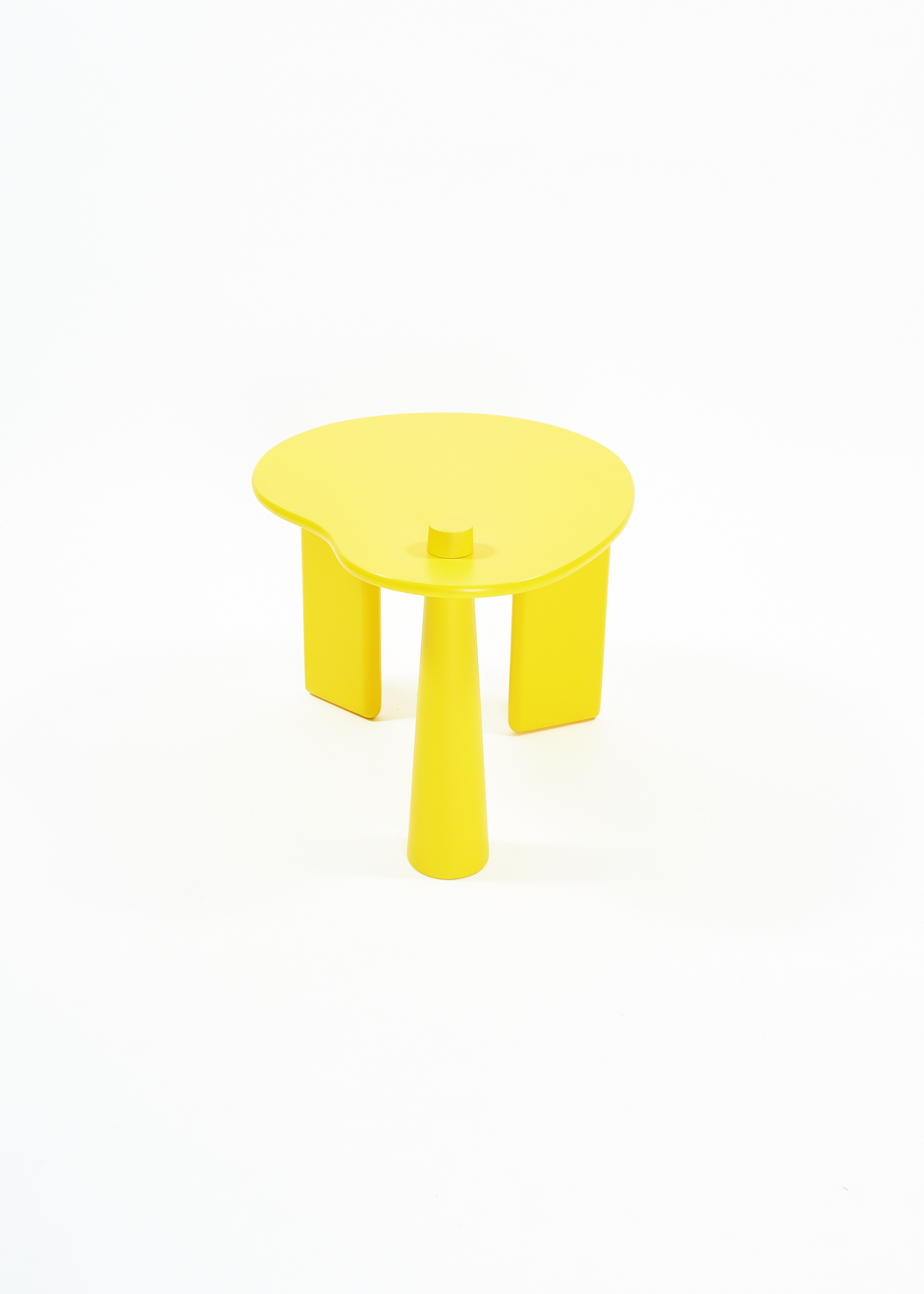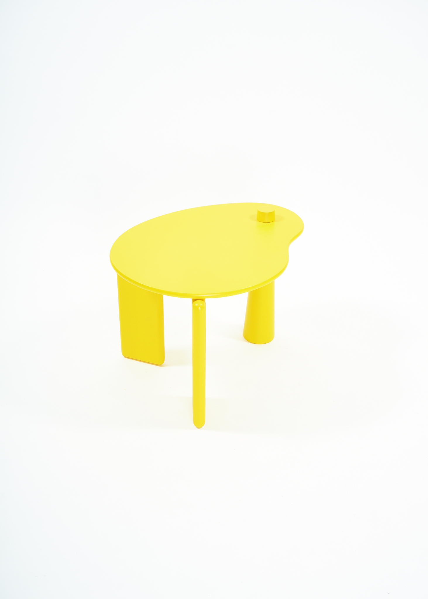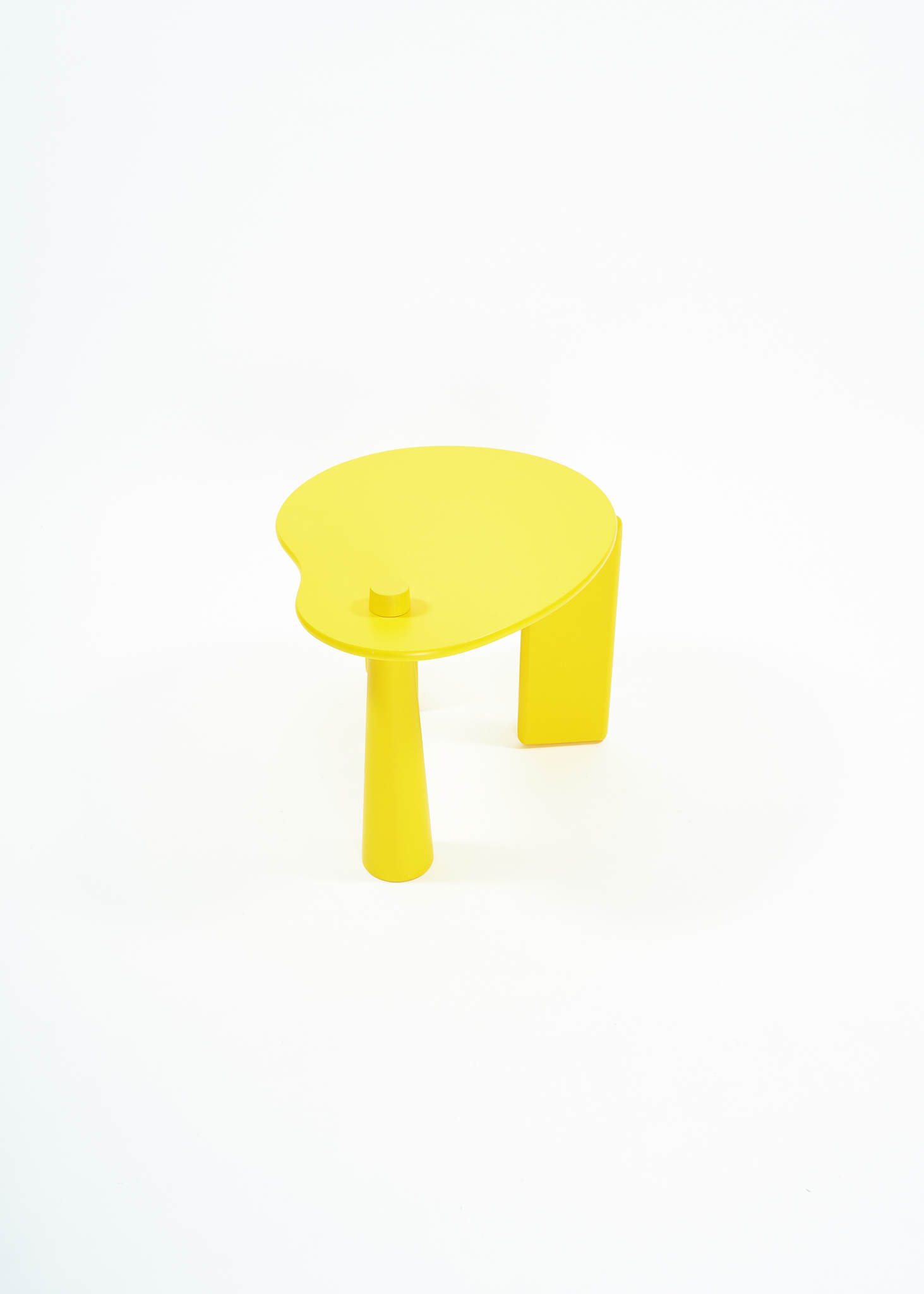 A little-known design outside of Quebec, this sculptural and insanely cute side table was manufactured in the 1990s by the now defunct Canadian furniture brand Laurier. This table was professionally refinished in a “Hot yellow” paint.