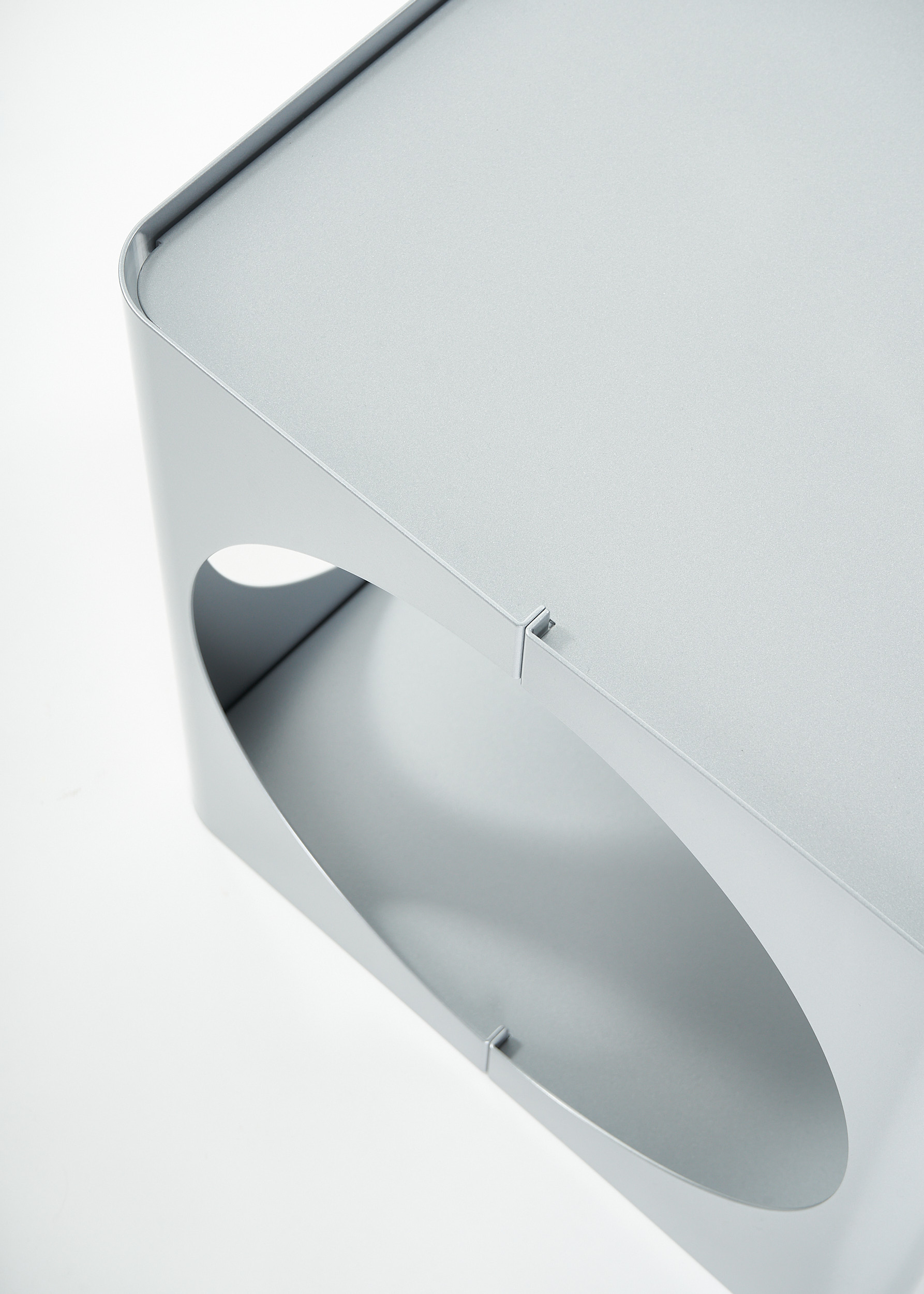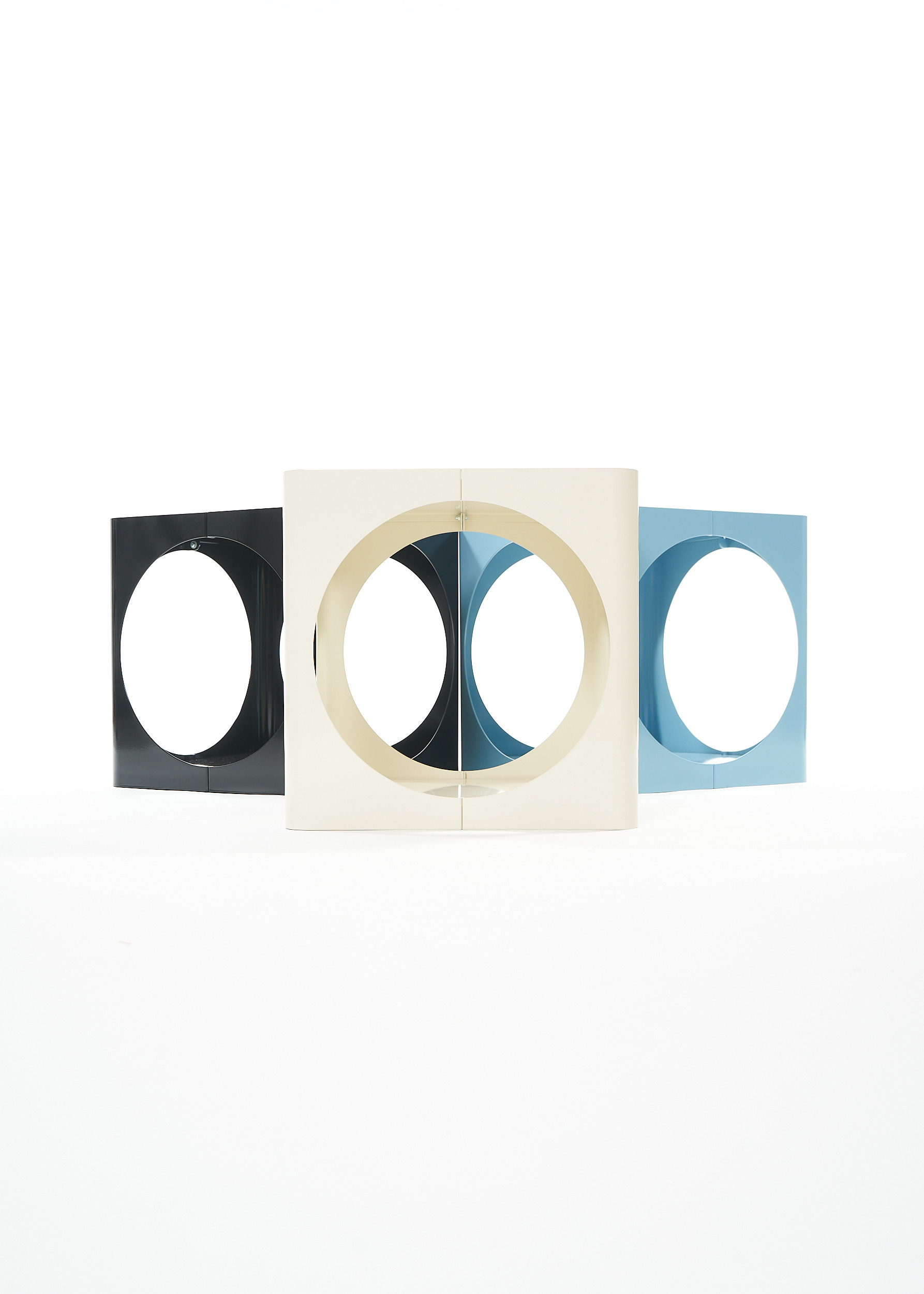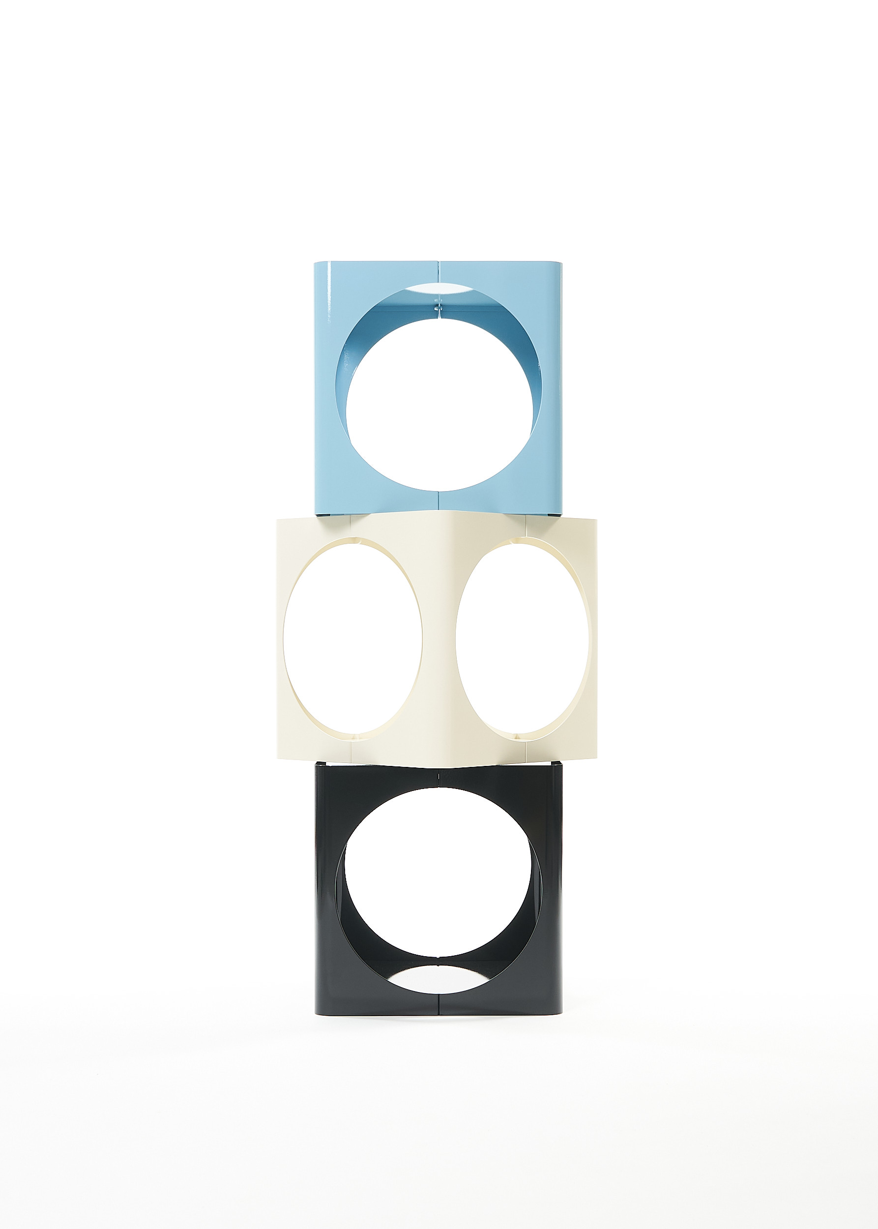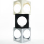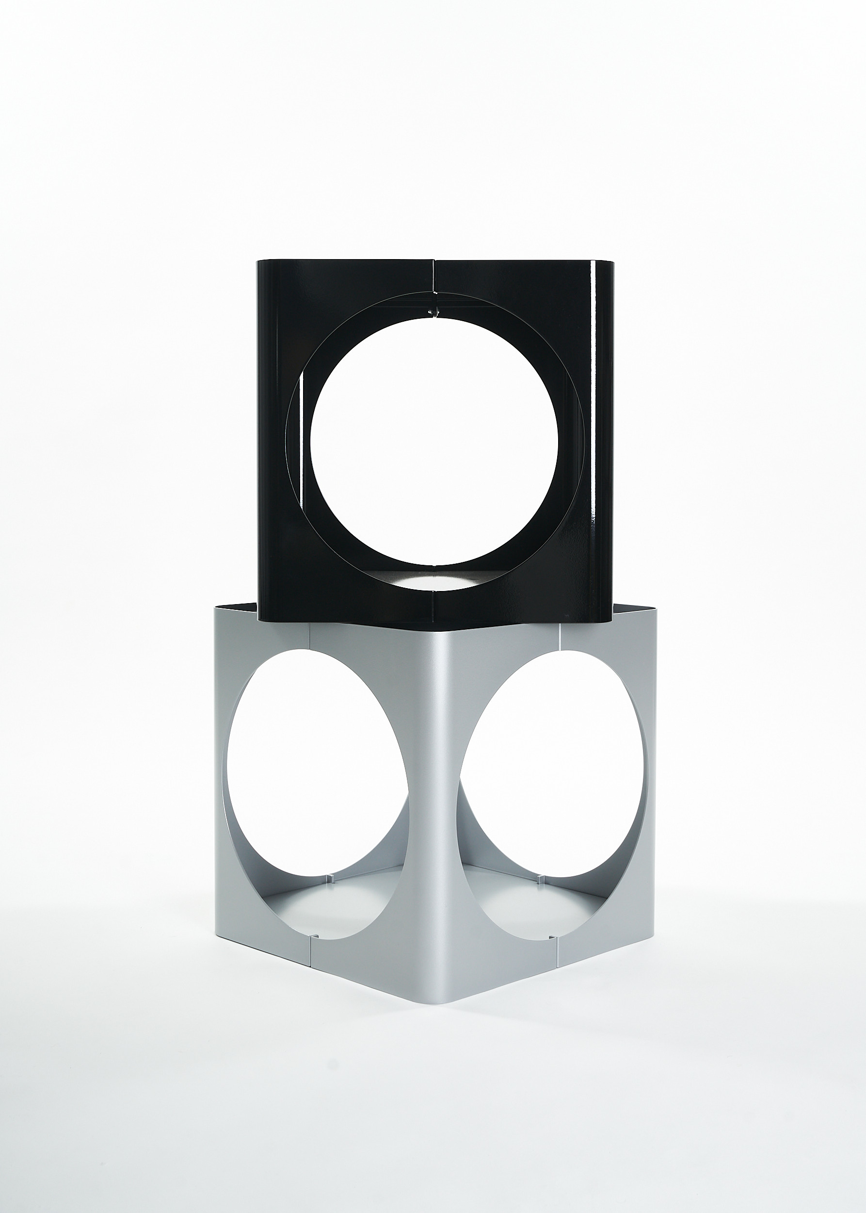 The RELAUNCH side table revisits a familiar modern design archetype: a cubic volume punctured by circular openings. While often associated with Joe Colombo, this form appeared in numerous variations throughout the late 1960s and 1970s, reproduced and reinterpreted so widely that its authorship gradually shifted from individual to collective.