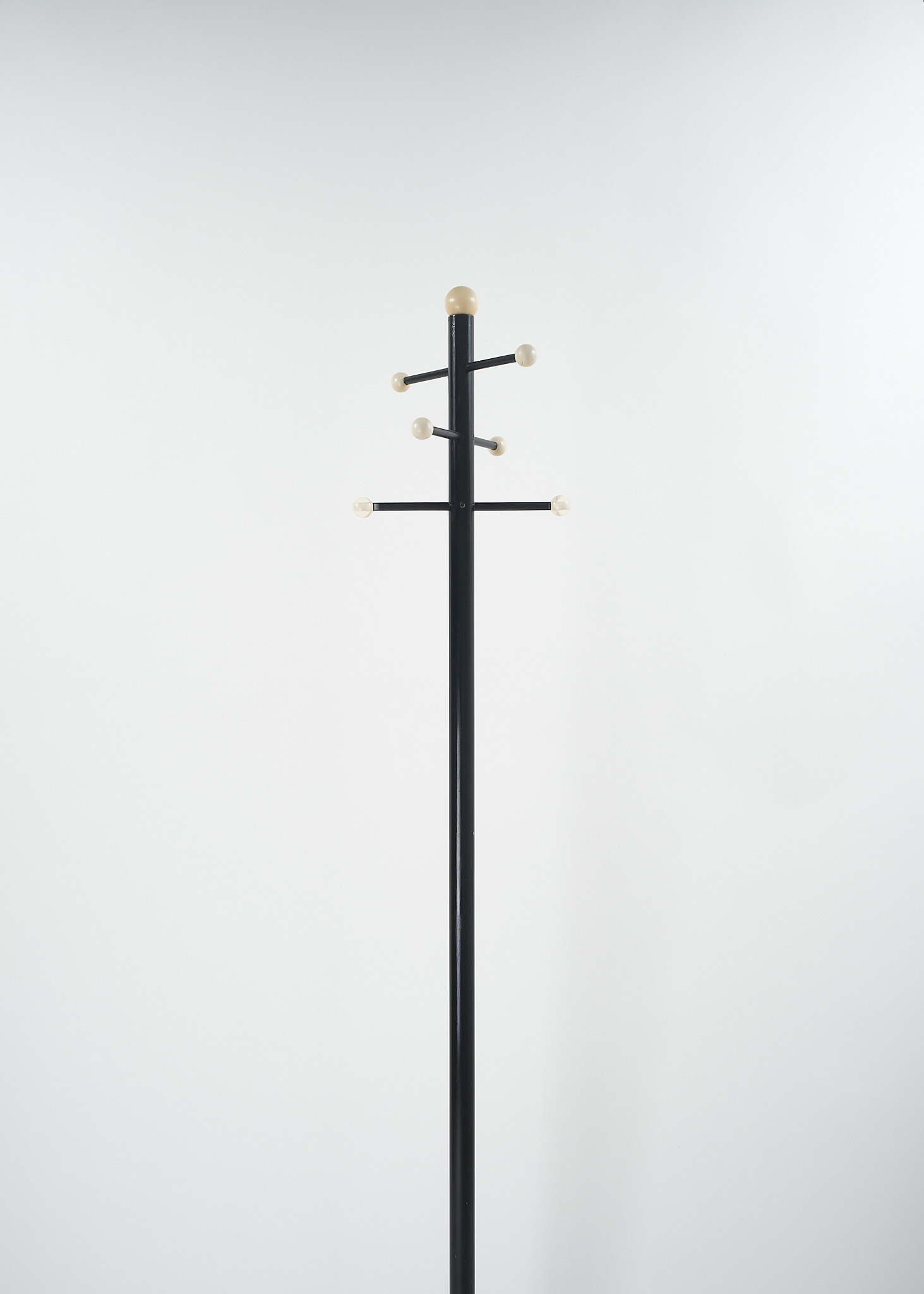 Judging by the materials used, the paint brush strokes and the method of assembly relying on screws, this coat stand is most likely the fruit of a DIY experiment from the 1960s’. A simple vocabulary of sticks and spheres paired with a great composition make for a homemade design that could be confounded with the work from the best designers of the Atomic Age.
