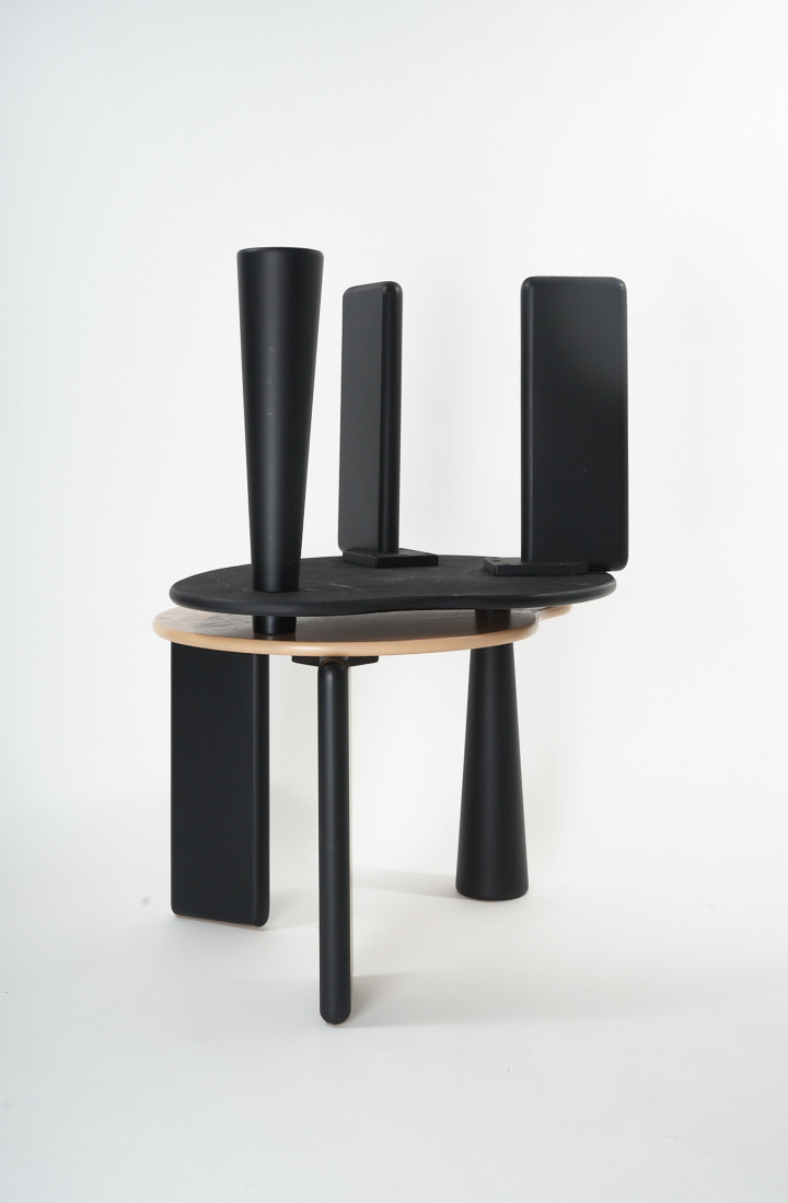 A little-known design outside of Quebec, this sculptural and insanely cute side table was manufactured in the 1990s by the now defunct Canadian furniture brand Laurier. Available in two options: one all-black with a painted MDF top and painted pine legs and another one with a veneered oak top and painted pine legs.