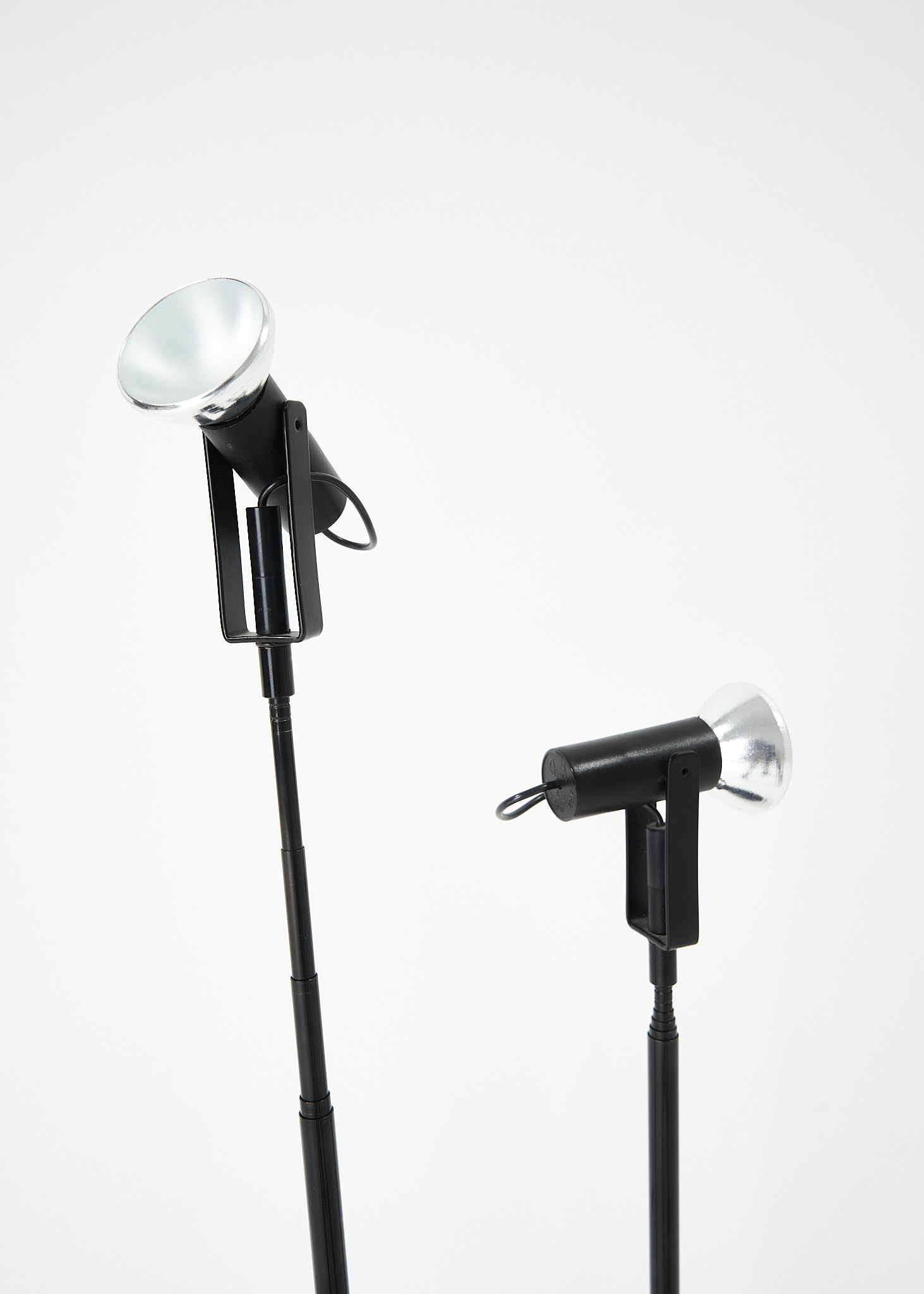 Making a clever use of telescopic radio antennas, the Sciopticon BZ 18 is an intriguing lamp that was designed in the 1980s by the dutch designer Hans Ansems for Luxo Italy. Displaying a quasi-infinite range of motion and orientation, the Sciopticon can be used as a task lamp in its retracted format or can be fully deployed into a floor lamp, following the needs of the user.