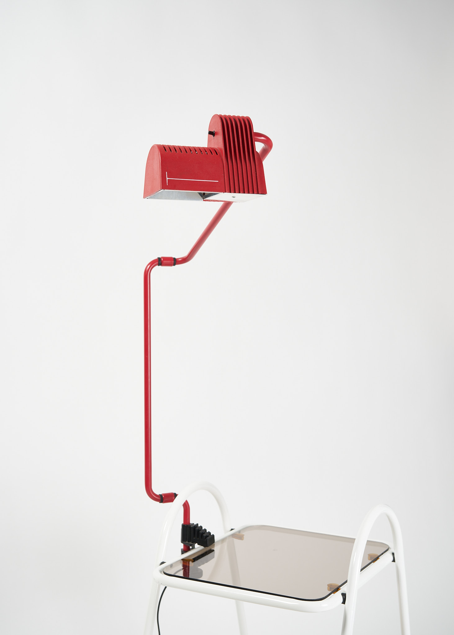 This ingenious lamp was designed in 1981 by Guillermo Capdevilla for the spanish brand Belux, now known under the name of B.lux. This design was the first collaboration of the spanish company with an external designer. The clamp at the base of the lamp means that it can be attached to practically any flat surface; the rotating mechanical joints allow for maximum adjustability to fit the needs of the user and the task at hand. More than a lamp, the BELUX system is a constructive principle that was translated into a whole lighting collection and is still being used today in some of the newer B.lux products.